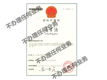 蓬生源商標注冊證