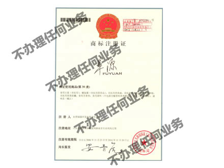阜源商標注冊證